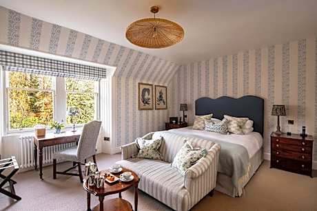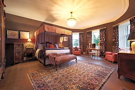 Cromlix is owned by Kim and Andy Murray. Nestled in the scenic Scottish countryside just three miles from Dunblane, this historic mansion is located in 34 acres of secluded woodlands and landscaped garden grounds with its own chapel, loch, tennis and pickleball courts. Cromlix offers 16 bedrooms plus a Gate Lodge, The Glasshouse Restaurant & Bar and several beautiful private dining & meeting rooms. Cromlix reimagines what a country house hotel can be with an exquisite, contemporary style and a refreshingly relaxed vibe. Discover the charm, spontaneity and serendipity that can happen when elegance is undone. The creative force behind the hotel is Andy’s wife Kim who takes an active role in shaping the Cromlix experience. The interiors are alive with the vibrant colors of nature, verdant greenery and botanical flourishes and filled with contemporary art and imaginative moments. Inspiration has been drawn from the naturally peaceful setting and sprinkled over with a little fun and a generous helping of drama. From the upholstery to the fresh florals, from the artwork to the lettering on the menu, each detail has been carefully, personally, curated – with a strong preference given to local Scottish artisans, suppliers, and designers. Cromlix delivers a fresh, natural, fun and effortless take on the quintessential country house experience, where the mood is relaxed, guests can unwind, be themselves and enjoy a characteristically welcoming stay. Quality is intrinsic to the hotel’s approach, from the carefully sourced local produce in the restaurant to the finesse with which it’s served. Renowned for impeccable service and attention to detail, but there’s no need to stand on ceremony or make a fuss. Engaging but unobtrusive, the team are always on the lookout for ways to craft special moments. On-site activities include lots of lovely walks and trails, archery, falconry, garden games and in-room spa treatments which can also be booked in advance. Guests can also enjoy The Billiards Room with its gorgeous mix of emerald and floral colors.