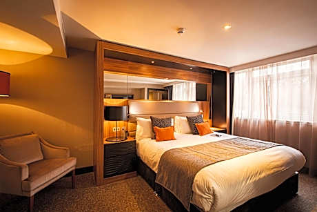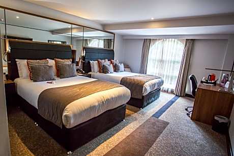 Dotato di Wi-Fi e parcheggio gratuiti, l'elegante hotel a 4 stelle Crowne Plaza Gerrards Cross sorge in una posizione ideale a Beaconsfield, nel cuore del Buckinghamshire, a pochi minuti di auto dalle autostrade M40 e M25. Gli ospiti possono gustare cocktail e drink al bar, e la struttura ospita un centro fitness e una spa. Il Crowne Plaza Gerrards Cross offre camere ben arredate con letti confortevoli e lenzuola di lusso. Le camere sono dotate di TV e set per la preparazione di tè e caffè. Ogni camera dispone di bagno privato con vasca o doccia. Il ristorante e bar in loco offre una vasta selezione di piatti ispirati alla tradizione locale, preparati al momento. È disponibile un'ampia varietà di opzioni per la colazione, tra cui opzioni cotte, continentali e frutta fresca. Il centro fitness e benessere dispone di una piscina coperta di 15 metri, con vasca idromassaggio, sauna, bagno turco e doccia. Sono disponibili anche trattamenti spa, tra cui trattamenti per il viso, massaggi e trattamenti di bellezza. La palestra dispone di una vasta gamma di attrezzature cardio e di una sala spinning, e sono disponibili anche lezioni di fitness. Il Crowne Plaza Gerrards Cross dispone di 7 sale riunioni, la più grande delle quali può ospitare fino a 300 persone. L'aeroporto di Heathrow dista 25 minuti di auto dalla struttura, mentre dalle stazioni ferroviarie di Gerrards Cross o Beaconsfield è possibile raggiungere il centro di Londra in 25 minuti. I Warner Brothers Studio distano 21 km.