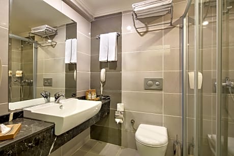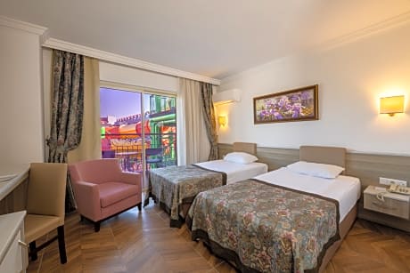 This room offers interconnecting rooms with 1 double bed and 2 single beds. Air-conditioned room with a satellite TV and balcony. It also offers a mini-bar and a lap-top sized safety deposit box.