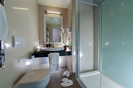 This air-conditioned room has a modern design with wood floors and an LCD TV with Sky channels. It features free Wi-Fi and a mini-bar.