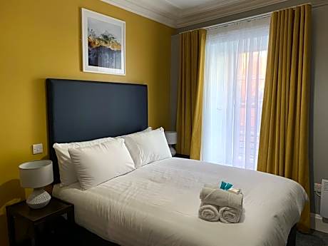 Providing free toiletries, this double room includes a private bathroom with a bath, a shower and a hairdryer. The double room provides a tea and coffee maker, a wardrobe, heating, a flat-screen TV, as well as city views. The unit offers 2 beds.