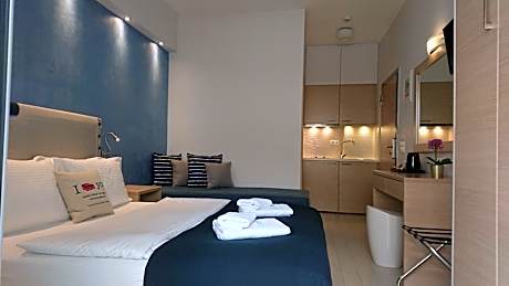 Located in the seaside Loutraki, just steps from the beach, Diolkos Studios offers modernly decorated studios with balcony and free WiFi access. Free wooden bicycles by Coco-Mat are available. Fitted with tiled floors and Coco-Mat mattresses and pillows, the studios at Diolkos offer full or side views over the Corinthian Gulf. They all include a kitchenette with cooking hobs, fridge and coffee making facilities, as well as a modern bathroom with shower cabin. A flat-screen TV is available. Guests will find a variety of bars, cafes, clubs and restaurants within a short walk of the property. The famous Loutraki Casino is 1640 feet away, while Loutraki Thermal Spa is 1.2 mi away. Athens International Airport is at a distance of 70 mi. License Number(s): 1247K112K0177301