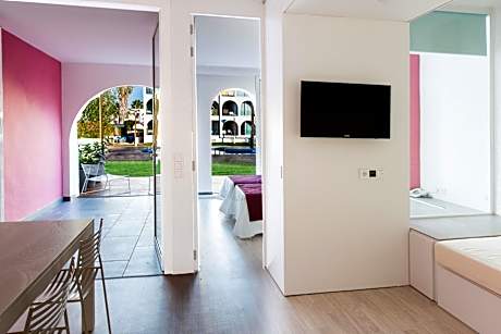 Ebano Hotel Apartments & Spa is located 984 feet from the beautiful Playa d'en Bossa Beach and less than 1.9 mi from Ibiza town. This apartment complex offers an outdoor pool, gardens, a restaurant-bar and free WiFi. Featuring plenty of natural light, each air-conditioned apartment comes with a private balcony. They have a fully equipped kitchenette. There is also a lounge with a sofa bed and 2 flat-screen TVs and Bluetooth radio. There is 24-hour reception, and staff can help you to purchase tickets or rent a car. Nearby you will find shops, bars and restaurants. Within 5 minutes’ walk of Ebano Hotel Apartments & Spa are Ibiza’s famous beach clubs, Space and Bora Bora. License Number(s): APM-1645
