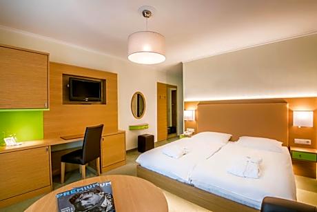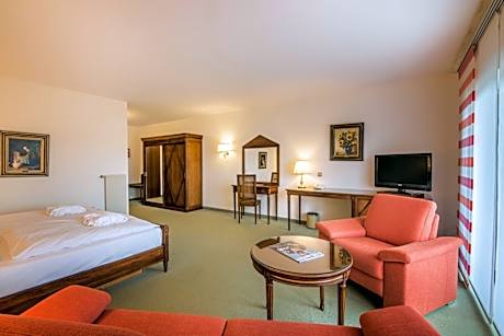 Eden au Lac is located in the Mullethal in Luxembourg and offers extensive leisure facilities including a spa. It overlooks Echternach Lake and features free WiFi in the public areas. The rooms at this hotel come with a mini-bar, TV and a work desk. Each room also features a seating area and is provided with a robe. Some of the rooms feature picturesque countryside views. Eden features connecting indoor and outdoor swimming pools. Guests can make use of the sauna, steam room and fitness center. The hotel also includes on-site tennis and squash courts, and more.
