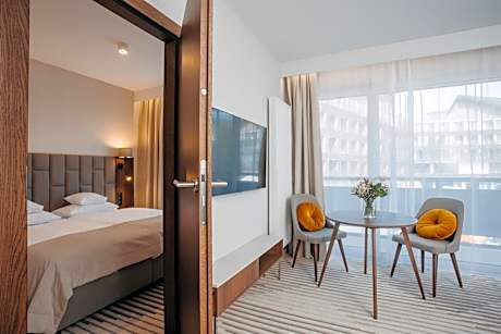 11 miles from Death Turn in Świeradów-Zdrój, Elements Apartments provides accommodations with access to spa facilities, wellness packages, and beauty services. Private parking is available on site. The accommodation offers a sauna, free Wifi throughout the property, and family rooms. At the condo hotel, every unit is fitted with a wardrobe and a flat-screen TV. Each room comes with a kettle, while some rooms come with a fully equipped kitchenette with a stovetop and kitchenware. At the condo hotel, each unit comes with bed linen and towels. The condo hotel offers a buffet or continental breakfast. Guests may eat at the on-site family-friendly restaurant, which is open for dinner, lunch, brunch, and cocktails. Guests at the property are welcome to use the fitness room and relax in the outdoor swimming pool. For guests with children, Elements Apartments features both an indoor and outdoor play area. Skiing and golfing can be enjoyed nearby, while a ski pass sales point and ski storage space are also available on-site. Izerska Railway is 13 miles from the accommodation, while Dinopark is 13 miles away. Copernicus Wrocław Airport is 88 miles from the property.