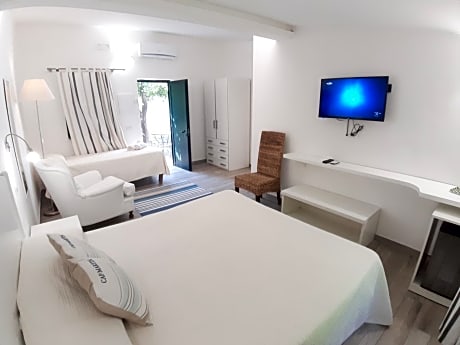 The junior suites are design rooms with modern amenities including plasma-screen TV, and relaxing deck chairs on the veranda.