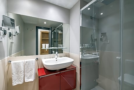 Located 1312 feet from Caldea Thermal Spa, Hotel Exe Prisma is a modern hotel which offers a gym and free WiFi. Each spacious room comes with flat-screen satellite TV and a seating area. The Exe Prisma is located in Escaldes, a 15-minute walk from Andorra la Vella’s popular shops. Grandvalira and Vallnord Ski Resorts are around 3.7 mi away. The hotel offers ski storage and equipment hire. Rooms at the Prisma have stylish modern décor and wooden floors. All include heating, a mini-bar and a safe. Bathrooms come with a hairdryer and a range of toiletries. The hotel’s bar-restaurant serves characteristic Italian food. A varied buffet breakfast is available each morning. Guests can also relax in the cocktail bar or in front of the open fire in the lounge.