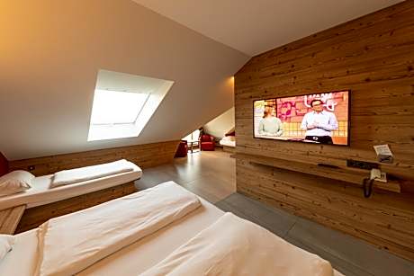 Providing bathrobes, this quadruple room includes a private bathroom with a walk-in shower and a hairdryer. The quadruple room provides soundproof walls, a seating area, a wardrobe, a flat-screen TV with cable channels, as well as city views. The unit offers 3 beds.