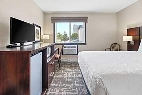This Fargo, North Dakota hotel is just off Interstate 29. It features a daily continental breakfast and pet-friendly guest rooms with free Wi-Fi. A cable TV and a work desk are furnished in each room at Fargo Inn & Suites. The simply styled rooms also include a microwave, fridge and tea/coffee-making facilities for convenience. Fargo Inn & Suites offers guests a fitness room and a business center. Drink and snack vending machines are also on site. This hotel is less than 5 miles from Fargo Dome and the Fargo Moorhead Redhawks. West Acres Mall is just a half-mile away.