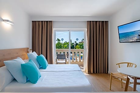 JUNIOR SUITE POOL VIEW 3 ADULTS +1 CHILD includes 2 single beds 80-130 width plus a sofa bed plus balcony, hairdryer, and tea and coffee making facilities .