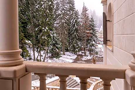 The luxurious 5-star Festa Winter Palace in Borovets at the foot of the Rila mountain has an indoor pool and is only 328 feet away from the ski runs and the cable car. The large relax center including the pool, a sauna, a steam bath, fitness facilities and offering a wide range of massages, is a great place to unwind after a day out in the mountains. Featuring period furniture and rich fabrics, the spacious rooms and suites all have balconies with mountain views. For food and drinks you can choose between 2 restaurants and 2 bars serving gourmet cuisine and selected beverages. Wireless internet is available in the entire Festa Winter Palace Hotel free of charge.