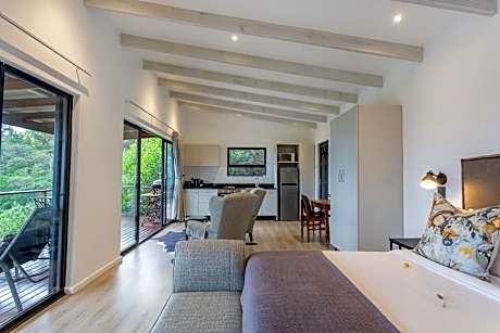 Featuring a large deck, off the deck is a BIG heated Hot tub, with wood BBQ facilities and a swing chair, this cottage includes a fully-equipped kitchen, x2 coffee machines, gas stove/cooker, dining area and lounge, with walking dishwashers lol. The lounge comes with a fireplace, satellite TV and DVD player. A bath and outside shower can be found in the private bathroom, stunning views can be seen from this unit, kitchen is well equipped and is 4*With free daily housekeeping, except Sundays.