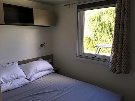 Featuring a private entrance, this mobile home consists of 1 living room, 3 separate bedrooms and 1 bathroom with a shower and a hairdryer. Guests will find a stovetop, a refrigerator, kitchenware and an oven in the well-equipped kitchen. The mobile home also offers a barbecue. Boasting a terrace with garden views, this mobile home also provides a tea and coffee maker and a flat-screen TV with satellite channels. The unit offers 6 beds.