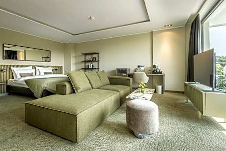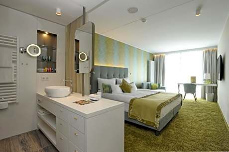 The perfect place to relax in nature? You have found it: THE VESPER, (directly) adjacent to a quiet nature reserve in the Felderbachtal (Wuppertal | Sprockhövel). DAS VESPER, with its 70 stylishly furnished rooms and suites, stands for modern comfort and absolute relaxation. It doesn't matter whether it's a conference, event or short vacation, because here you'll find enough space and the peace and quiet you need to recharge your body's batteries. Elegant bathrooms, free WiFi and an irresistible view of the green areas of our spacious complex are of course included. Every morning a rich breakfast buffet awaits you in the inviting restaurant, which leaves nothing to be desired. The á la carte restaurant impresses with seasonal dishes, fresh local ingredients and a very special atmosphere in the middle of greenery. On sunny days and long evenings, the path leads directly to the sun terrace to enjoy homemade cakes, freshly baked waffles or the dishes from the menu. NRW's largest 45-hole golf course right around the hotel makes golfers' hearts beat faster everywhere. No matter whether the two 18-hole courses or the 9-hole course, there is something for everyone here! A popular hiking trail starts right outside the hotel's front door and invites you to explore the beautiful landscape. In addition to hiking, Vesper also offers exciting activities such as geocoaching, and of course you can perfect your golf skills on the hotel's golf courses or take a tour through the charming town of Sprockhövel. Even if the peace and quiet in the beautiful nature of the Felderbachtal is tempting, it is worth it to visit Wuppertal | Explore Sprockhövel and the surrounding area. Industrial history meets impressive architecture, culture meets gastronomy and urban flair meets green nature. For an uncomplicated journey, the A46 motorway is only 1.2 mi away. The Schwelm S-Bahn station can be reached in about 15 minutes by car and offers direct connections to Wuppertal and Dortmund, so you can easily take trips to the surrounding cities at any time.