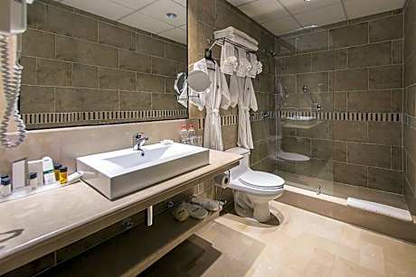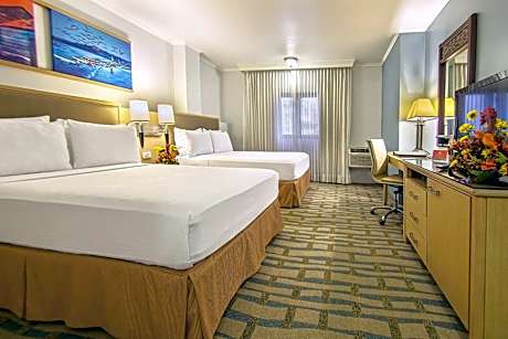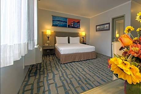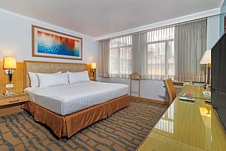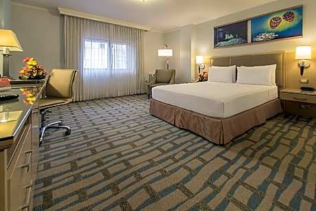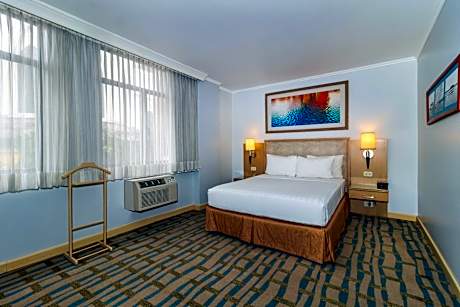 Grand Hotel Guayaquil, an Ascend Collection Hotel – A Distinctive Establishment in the Heart of Our City Our hotel features a privileged location right next to the iconic Metropolitan Cathedral of Guayaquil, allowing our guests easy access to important cultural and historical landmarks. We strive to provide a comfortable and pleasant stay by offering a wide range of amenities designed to meet the needs of every traveler. Enjoy our refreshing outdoor pool, stay active in our fully equipped gym, or indulge your palate at our La Pepa de Oro restaurant—all within our premises. Our rooms have been thoughtfully decorated in a traditional style that evokes the rich history of Guayaquil while maintaining the modern comforts you expect. Each room is equipped with high-speed free Wi-Fi, flat-screen TV for entertainment, air conditioning for climate control, and cable TV with a variety of channels. For those moments when you want to relax and recharge, our beautiful pool offers an oasis of tranquility with its two waterfalls and natural greenery surroundings. Additionally, our spacious gym is not only equipped with state-of-the-art fitness machines but also features outdoor board games, a sauna to relieve stress, and a steam room for a complete wellness experience. Regarding dining options, we invite you to enjoy snacks and a cozy ambiance at our La Pepa de Oro café-bar. For a wider selection of beverages and a laid-back atmosphere, our Turtle Bar is the perfect spot. For your convenience upon arrival, we offer a complimentary shuttle service from José Joaquín de Olmedo International Airport to the hotel. This service is available upon request, and our team will be happy to arrange it for you. The central location of Grand Hotel Guayaquil places you less than a mile from the city's dynamic commercial district, granting easy access to shops, businesses, and entertainment. The proximity to the airport—just a 10-minute drive away—and the bus station, located 16 mi away, makes us a convenient choice for both business and leisure travelers. At Grand Hotel Guayaquil, the safety of our guests is a top priority. Therefore, we have implemented a private security system operating 24 hours a day, both within the hotel and around the premises. Our goal is to ensure you feel completely at ease and secure throughout your stay. We look forward to welcoming you to Grand Hotel Guayaquil and providing you with an unforgettable experience.