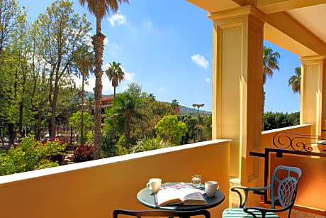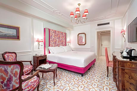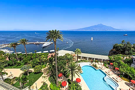 Dotato di una spiaggia privata e di rigogliosi giardini di palme, il Grand Hotel Royal sorge su una scogliera nel centro di Sorrento. Vanta una piscina all'aperto e viste panoramiche sul Golfo di Napoli e sul Vesuvio. Le camere regalano viste sul mare, sui giardini o sulla città. Arredate in stile classico con mobili in legno sorrentino, tutte le sistemazioni dispongono di WiFi gratuito e la maggior parte include un bagno in marmo e un balcone. In alta stagione, gli ospiti possono usufruire gratuitamente dell'accesso alla spiaggia e dell'uso di ombrelloni, lettini e teli mare. All'interno, i saloni presentano mobili d'epoca, scale in marmo e lampadari di cristallo. Il Grand Hotel Royal offre un'esperienza gastronomica completa. Comprende diversi ristoranti e bar in loco che servono piatti della cucina regionale e classica italiana. Molti di essi regalano viste panoramiche sul paesaggio circostante. L'hotel dista 5 minuti a piedi dalla stazione ferroviaria della Circumvesuviana, che collega Sorrento con Napoli, distante 50 km. Pompei e il Parco Nazionale del Vesuvio sono raggiungibili in 40 minuti di auto.
