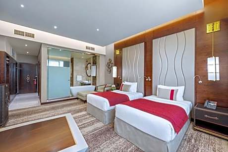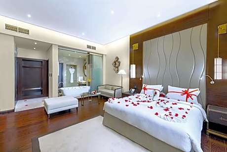 Grand Millennium Tabuk offers top-notch services and amenities, ensuring guests experience utmost comfort. Remain linked during your visit by utilizing the complimentary internet access available.Prior to your check-in date, you can arrange airport transportation services, guaranteeing a seamless and efficient experience for both arrival and departure. Services offered by taxi and car hire at the hotel ensure effortless exploration of Tabouk. The hotel offers complimentary parking for guests who arrive with their own mode of transport.Effortlessly plan your daily activities and travel requirements with concierge service, express check-in or check-out and luggage storage provided by the front desk services.For extended visits or whenever required, the dry cleaning service and laundry service ensures your preferred travel garments remain clean and accessible.During leisurely days and evenings, in-room amenities such as 24-hour room service, room service and daily housekeeping enable you to maximize your stay in the room.In limited designated zones, smoking is exclusively permitted. Crafted for coziness, every guestroom provides an array of features, guaranteeing a tranquil night's sleep while maintaining the level of comfort. For a more enjoyable stay, select rooms at hotel are equipped with linen service, blackout curtains and air conditioning.At Grand Millennium Tabuk, guests can choose from a variety of room configurations, some of which feature separate living room and balcony or terrace. For certain chosen rooms, guests can enjoy in-room amusement like television and cable TV as a part of their stay. Rest assured that your hydration needs will be met, as some guestrooms are equipped with a refrigerator, bottled water, a coffee or tea maker, instant coffee, instant tea and mini bar. It is worth noting that certain guest bathrooms feature a hair dryer, toiletries and bathrobes for your convenience.Chosen accommodation prices might include entry to the executive lounge, offering premium services amid an ambiance of refined extravagance. Each morning at Grand Millennium Tabuk, a scrumptious, homemade breakfast kick-starts the day.Begin your holiday mornings right with your essential cup of coffee, offered daily at the cafe on-site. During your visit, indulge in a range of delightful culinary choices at hotel to enhance your experience. Concerned about your dining preferences? Fret not! Grand Millennium Tabuk offers an assortment of culinary varieties featuring halal choices, catering to all tastes. Experience a fantastic evening effortlessly! Relish an entertaining night without venturing beyond the confines of the bar. Grand Millennium Tabuk provides a superb assortment of leisure amenities for guests to enjoy.Treat and spoil yourself by stopping at massage, steam room, spa and sauna for a memorable experience.Begin your holiday perfectly by taking a plunge into the swimming pool.Eliminate those holiday calories by stopping by hotel and making use of their well-equipped exercise amenities. License Number(s): 10008056