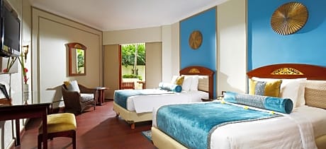 At Grand Mirage Resort & Thalasso Bali, exceptional service and top-notch amenities create a memorable experience for guests.Complimentary internet access is available in the resort to ensure you stay connected during your visit. Arrange your trips to and from the airport using the resort's convenient transportation services booking.Discover the wonders of Bali with ease by utilizing the services provided by taxi and shuttle.Complimentary parking is available for guests.Continuously receive the support you require through front desk amenities such as concierge service, luggage storage and safety deposit boxes.At the resort, their tours can even assist you in booking tickets and securing reservations for leisure activities and adventures. Always look your best in your preferred attire with the dry cleaning service and laundry service provided at Grand Mirage Resort & Thalasso Bali. Craving relaxation? In-room amenities such as 24-hour room service, room service and daily housekeeping allow you to maximize your time spent inside the room.Additionally, you can obtain minor travel essentials and miscellaneous items at the convenience stores without departing from the Grand Mirage Resort & Thalasso Bali.Due to health concerns, smoking is strictly prohibited within the entire premises of resort. Accommodations come equipped with all the conveniences required for a restful night's slumber.A selection of rooms feature linen service, blackout curtains and air conditioning to ensure your comfort and convenience.A few accommodations at Grand Mirage Resort & Thalasso Bali also include unique design elements like a balcony or terrace.A few chosen rooms are equipped with television, in-room video streaming and cable TV to ensure guest amusement. In certain rooms, the resort offers visitors access to a refrigerator, bottled water, a coffee or tea maker, instant coffee, instant tea and mini bar.Grand Mirage Resort & Thalasso Bali offers a hair dryer, toiletries and bathrobes in the restrooms of specific accommodations. At Grand Mirage Resort & Thalasso Bali, each day commences with a scrumptious breakfast offered at no additional cost. All adore a delightful cup of coffee! An on-site coffee shop ensures you can relish a cup of authentic, freshly-brewed coffee every morning -- or whenever you desire it.Allow your journey to be free from the pangs of hunger! On-site eateries offer delicious and accessible meal choices.At Grand Mirage Resort & Thalasso Bali, guests with diverse dietary needs are accommodated by offering options like halal among the different types of cuisine.An evening spent within the resort's karaoke rooms and bar may prove to be just as entertaining as venturing out with your fellow adventurers.At Grand Mirage Resort & Thalasso Bali, guests can take pleasure in the delightful recreational amenities provided for their entertainment. At the resort, a wide range of enjoyable activities ensures that there's never a dull moment during your visit. Don't miss out on the easily reachable beach in the vicinity. Conclude your days in complete tranquility by paying a visit to massage, salon, spa and sauna for ultimate relaxation.At Grand Mirage Resort & Thalasso Bali, a wide array of amenities guarantees a fulfilling experience throughout your visit. Make your holiday truly memorable by taking a rejuvenating plunge into the pool.At Grand Mirage Resort & Thalasso Bali, the poolside bar provides an excellent incentive to enjoy extended hours in your swimwear.At the resort fitness center, you have the option to engage in your daily exercise routine or simply alleviate your jet lag by breaking a sweat.