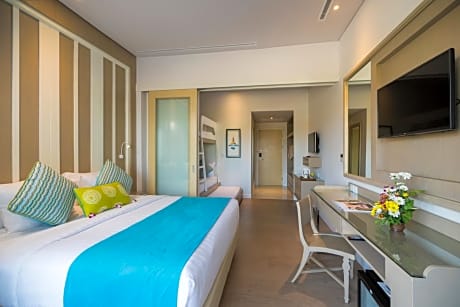 This family-friendly studio accommodates up to 5 people and features a balcony, a mini-bar and a seating area. The king bed and the bunk bed are separated by a sliding glass door. Guests enjoy garden view and partial ocean view.