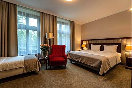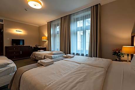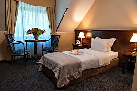 The boutique Grand Sal is located in the heart of historical St. Kinga's Park just next to the world-famous Wieliczka Salt Mine. It offers elegant air-conditioned rooms with free Wi-Fi and a mini-bar. Each room in Grand Sal comes with a private bathroom featuring free toiletries. All rooms have satellite TV and tea and coffee making facilities. There is a safe deposit box in each room. Grand Sal features a well-equipped sauna. Massage services are available at a surcharge. Grand Sal Restaurant specializes in regional dishes from Lesser Poland. During summer, guests can enjoy their meals on a beautiful outdoor terrace with a garden view. There is a fitness center 2953 feet from the property that guests can use at a surcharge.