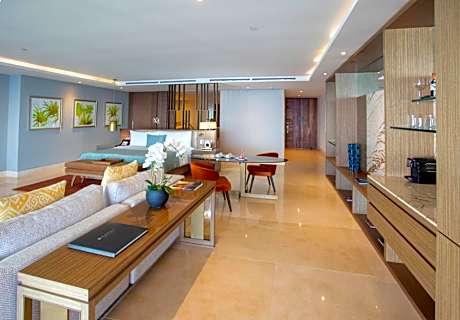 Located in San José del Cabo in the Baja California Sur Region. Grand Velas los Cabos - All Inclusive features 3 infinity pools and a private beach area. The resort has a Luxury Wellness Spa and hot tub. Free WiFi is featured throughout the property and free private parking is available on site. Rooms feature a flat-screen TV. All units include views of the sea. The rooms are equipped with a private bathroom and bath. Extras include bath robes and slippers. You will find a 24-hour front desk and shops at the property. The hotel offers 7 restaurants with a wide variety of dishes, including a dinner restaurant with Italian food, Mexican cuisine, French cuisine, seafood & grill. Signature cuisine is awarded a Michelin star. And a Cabrilla and Azul restaurant, in which Guests can enjoy a drink at the all-inclusive premium bar or a variety of dishes. The area is popular for golfing and the resort also offers car hire. The nearest airport is Los Cabos International Airport, 14 mi from the property.