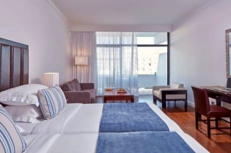 On Ayia Napa’s sandy beachfront, the Grecian Bay features indoor and outdoor pools, spa facilities, and 3 tennis courts. It offers panoramic sea views and air-conditioned rooms with private balconies. All guest rooms have satellite TV, telephone, minibar and hairdryer. Each has a work desk and private bathroom with bathrobe and slippers. Guests can use a free shuttle service to Cape Greco National Park, 3 miles from the hotel. The small picturesque harbor of Ayia Napa is only a 10-minute walk away. Grecian Bay Spa Centre offers specialized massage treatments and aerobic sessions. Guests can also relax in the hot tub and have the hair salon. Right on the beach, the open air Fisherman’s Hut Tavern serves fresh fish dishes with a view of the Mediterranean Sea. Guests can also enjoy international cuisine at the elegant Esperia Restaurant. Free Wi-Fi in public areas and on-site parking are available.