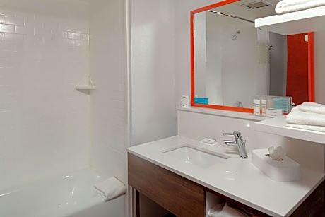 Kitchen, sofa, lounge chair, desk, 32-inch TV, free WiFi Relax in this two-room king suite with a clean and fresh Hampton bed® and a kitchen. Sink into the sofa, recliner or lounge chair and watch movies on the 32-inch HDTV. Catch up with work at the desk with ergonomic chair. Surf the web with free WiFi. Refresh your senses in the bathroom, complete with a shower and plush towels. Enjoy the convenience of having a coffeemaker in the room.