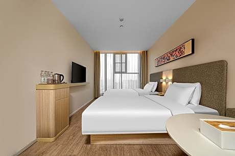 Hanting Hotel Wuhan Wangjiawan Sixin Avenue Metro Station provides flawless service and all the necessary facilities for visitors.Stay connected with your associates, as complimentary Wi-Fi is available during your entire visit.The hotel offers reception amenities including express check-in or check-out and luggage storage to ensure a comfortable stay for guests. The hotel's daily housekeeping ensures an excellent option for your stay. In order to ensure the utmost level of relaxation, the guestrooms feature an inviting design and are equipped with all basic necessities, creating a delightful stay experience. To ensure a pleasant stay, a selection of rooms at hotel come furnished with linen service and air conditioning, all designed with your ease in mind. Selected rooms offer in-room amusement like television as a source of entertainment for guests to enjoy.Rest assured, quenching your thirst is not a concern with bottled water available in select accommodations. Understanding the significance of bathroom facilities in enhancing visitor contentment, hotel offers a hair dryer, toiletries and towels within a few chosen chambers.