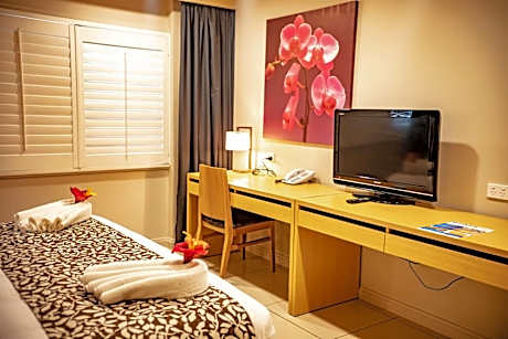 Surrounded by beautiful gardens, Highlander Hotel offers a heated outdoor swimming pool, 2 bars and a restaurant. All accommodations features cable TV and a desk. Guests also enjoy a fitness center and 24/7 reception. Located at the top end of Mount Hagen town, The Highlander Hotel is 15 minutes’ walk from Mt Hagen Market. It is 10 minutes’ drive from Mount Hagen Airport and free transfers are available to and from the Airport. All accommodations features a safety deposit box and tea/coffee making facilities. All rooms include a private bathroom with a shower. The Palmuri Restaurant is open for breakfast, lunch and dinner each day. It offers indoor dining and outdoor dining overlooking the swimming pool and lush tropical gardens. The menu includes pizza, seafood and steak. The Nu Ming Bar is serves a wide range of beer and wine and offers bar snacks. The popular Sportsman’s Bar presents regular DJs, billiards tables and gaming machines.