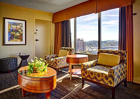 Connected via sky bridge to the Knoxville Convention Center and located in the heart of the city center, this hotel provides modern amenities along with first-class facilities and services. Only a short distance from the Hilton Knoxville is the University of Tennessee campus, which is less than a km away. Guestrooms are furnished with a flat-screen TV, work desk and seating area. Complimentary toiletries are provided. Knoxville Hilton guests will find a fitness center, complete with an outdoor pool and sundeck onsite. The hotel also features an onsite restaurant and a lounge. An outdoor bar and patio with a fire pit are also available. The Knoxville Zoo is 6 mi from the property. Dollywood is 35 mi drive away.