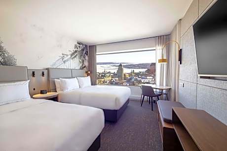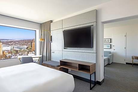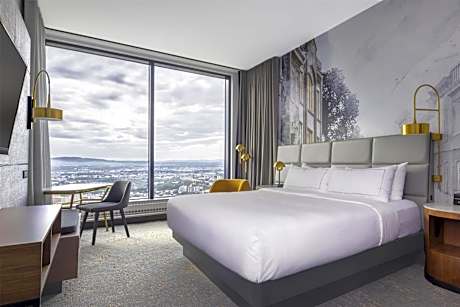 This hotel is located within a 5-minute walk of the walled city of Old Quebec. The hotel features a heated outdoor pool and offers sight-seeing tours of the area. Hilton Quebec rooms include a flat-screen TV and MP3 docking station. Rooms are equipped with a coffee maker and cable TV. The Quebec Hilton offers views of the St. Lawrence River and the Laurentiain Mountains. The hotel provides guests a gym. Hilton Quebec is one mile from the Musee National des Beaux-Arts du Quebec (National Museum of Fine Arts of Quebec). The hotel is within a 5-minute walk of the Quebec Parliament buildings. For those who book an Executive room, we have a unique Panoramic Executive Lounge on the top floor which has the most impressive floor-to ceiling view of Old Quebec. Executive privileges include complimentary deluxe continental breakfast, refreshments, late afternoon bites and private concierge. We have a grab'n go counter which offer a variety of beverages, light meals and snacks made on site daily. In addition to specialty coffees, customers can choose from a selection of wines, beers and products from local microbreweries. Guests at the Hilton Québec can dine at CABU Boire et Manger, led by renowned chef Marie-Chantal Lepage, which features authentic cuisine with a local touch, for breakfast, lunch (on weekdays), and dinner. License Number(s): 054806, 2026-09-30