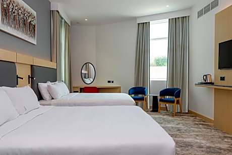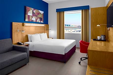 Holiday Inn Express Dubai Airport By IHG provides flawless service and all the necessary facilities for visitors.Stay connected with your associates, as complimentary Wi-Fi is available during your entire visit.To facilitate your arrival and departure, you can pre-book airport transfer services prior to checking in. The hotel offers taxi amenities to assist you in discovering your desired offerings in Dubai.When arriving by car, you'll be grateful for the on-site complimentary parking at hotel.The hotel offers reception amenities including concierge service, luggage storage and safety deposit boxes to ensure a comfortable stay for guests. Should you require it, the ticket service can even assist you in booking tickets and securing reservations for the finest shows and events in the vicinity.Whether it's an extended stay or simply needing fresh attire, dry cleaning service and laundry service provided by hotel ensures your cherished travel garments stay spotless and accessible. The hotel's daily housekeeping ensures an excellent option for your stay.Need something at the last minute? The convenience stores has you covered, ensuring your requirements are met without any inconvenience.In order to ensure the utmost level of relaxation, the guestrooms feature an inviting design and are equipped with all basic necessities, creating a delightful stay experience. To ensure a pleasant stay, a selection of rooms at hotel come furnished with linen service, blackout curtains and air conditioning, all designed with your ease in mind.In select rooms, visitors can enjoy a touch of amusement with the availability of television and cable TV for their entertainment needs.Within specific rooms, a refrigerator, a coffee or tea maker and mini bar is conveniently available for your use.Understanding the significance of bathroom facilities in enhancing visitor contentment, hotel offers a hair dryer and toiletries within a few chosen chambers. Each day, arise to a delightful complimentary morning meal at Holiday Inn Express Dubai Airport.How about kicking off each day of your getaway with a delicious cup of coffee? At the hotel, relish in the invigorating taste of a freshly brewed, excellent coffee. Various excellent meal offerings at hotel ensure that enticing and easily accessible options are constantly available. Visitors with specific dietary preferences can savor a variety of culinary styles at Holiday Inn Express Dubai Airport, featuring halal choices to accommodate their needs. Upon your arrival, don't miss experiencing bar for enjoyable in-house evening entertainment. Visitors staying at Holiday Inn Express Dubai Airport have the option to receive groceries in their room for meal preparation, courtesy of the unique service provided by the hotel. Visitors wishing to create their personal culinary delights will appreciate the on-site shared kitchen provided at this establishment. Throughout the day, engage in the entertaining activities available at Holiday Inn Express Dubai Airport. Guests who enjoy maintaining their fitness regimen while on holiday can visit the fitness center provided by hotel.