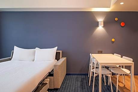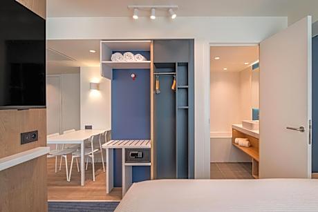The suite offers air conditioning, a tea and coffee maker, as well as a private bathroom featuring a walk-in shower and a hairdryer. The kitchenette comes with a refrigerator, kitchenware and a microwave. The suite provides a dining area, a safe deposit box, a sofa, a carpeted floor and a flat-screen TV with streaming services. The unit offers 2 beds.