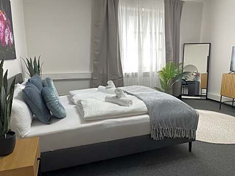 The double room features a shared bathroom equipped with a shower and a hairdryer. The spacious double room provides a flat-screen TV with streaming services, a seating area, a wardrobe, heating as well as city views. The unit offers 1 bed.