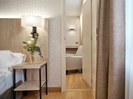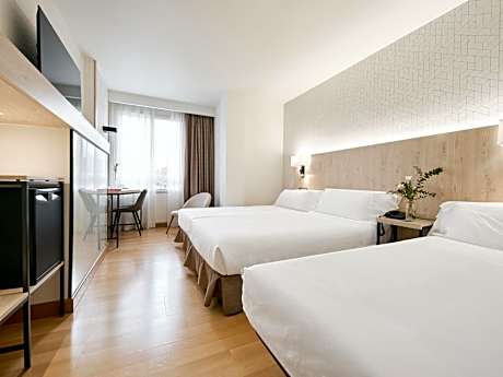 Located 20 minutes' walk from central Pamplona, next to the city's hospitals, this stylish hotel offers free Wi-Fi and air-conditioned rooms with flat-screen satellite TVs. Featuring wooden floors, rooms come with a mini-bar and a safe. The private bathroom has a bath tub and shower, as well as a hairdryer and toiletries. The hotel's snack bar and restaurant offers a selection of dishes and drinks. Room service is also available. Guests have free access to a gym located 656 feet from the hotel. Luggage storage is offered and on-site parking is available for an extra charge. The hotel has easy access to the A15, A21 and A12 Motorways. Staff at reception can provide information about what to see and do in Navarre. License Number(s): UH30652