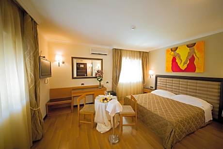 Located in Pontinia, 16 miles from National Park of Circeo, Hotel Ares provides accommodations with a seasonal outdoor swimming pool, free private parking, a garden and a shared lounge. With a restaurant, the 3-star hotel has air-conditioned rooms with free WiFi, each with a private bathroom. Guests can use a bar. At the hotel, each room comes with a desk. Guest rooms in Hotel Ares are equipped with a flat-screen TV and free toiletries. A buffet, continental or Italian breakfast is available at the property. Speaking both English and Italian, staff at the reception can help you plan your stay. Terracina Train Station is 14 miles from the accommodation, while Temple of Jupiter Anxur is 16 miles away. Rome Ciampino Airport is 43 miles from the property. License Number(s): 059017-ALB-00002, IT