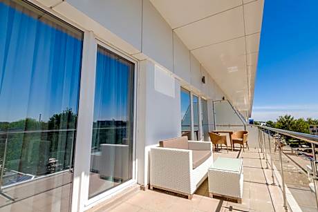 Only 66 feet from the beach, the 4-star Bavaria Blu is located at the entrance to Mamaia Resort. It offers a seasonal outdoor pool from June through August, and free WiFi. The rooms at Bavaria Blu Hotel and Conference Centre welcome guests with plush carpets and air conditioning. They all come with mini-bars and cable TV, as well as a private bathroom with hairdryer and free toiletries. Some of the rooms feature sea views, décors with romantic accents, such as upholstered beds, or themed decorations. Breakfast is served every morning at the hotel’s restaurant and there is a bar for drinks. The pool includes an area for children. Private parking is possible upon reservation, at an extra charge. Free parking is also possible on the spot, if there are available places. Bavaria Blu Hotel is located 328 feet from the aqua park and 3.7 mi from Constanta Train Station. Constanta Airport is 19 mi from the property, while Bucharest International Airport is 152 mi away. Transfers to both these airports can be booked at the 24-hour reception.