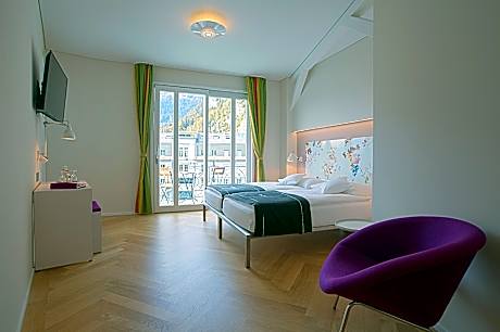 The Boutique Hotel Bellevue on the river Aare is located near the Interlaken-West train station in the center of the city, but enjoys a quiet location near the water. All rooms have balconies and a wonderful view of the river and the surrounding mountains. Various restaurants and shops, as well as a jewelry and watches store can be found in the immediate vicinity of Boutique Hotel Bellevue.