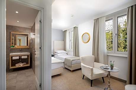 Built in the early 30s as the first Hotel on Pelješac Peninsula, and completely renovated in the summer of 2016, the charming Aminess Younique Bellevue Hotel, located on Dubrovnik Riviera, attracts guests to enjoy the beautiful sunset at the terrace with amazing views to Korčula Island. The unique touch of Aminess Younique Bellevue Hotels is a unique bond of modern design and tradition. Located in a pine forest, it is only 1640 feet from the center of Orebić at the southwest point of the Pelješac Peninsula, and 164 feet from the pebble beach which overlooks crystal clear turquoise Adriatic sea and is surrounded by Mediterranean vegetation. Featuring a flat-screen satellite TV, mini-bar and a safe, the comfortable and air-conditioned rooms also offer park or sea views, while some have a balcony. There is a swimming pool for adults and one for children, featuring a sun terrace with loungers and parasols. Kids can also have fun at various entertainment programs, while you can be active on one of the 2 tennis courts or at table tennis. "The hotel restaurant in its offer - features a buffet offer, as well as a separate a la carte offer" . Guests can taste delicious Mediterranean specialties, accompanied by superb wines originating from the Pelješac Peninsula. If you like diving, windsurfing, or hiking, Orebić and the St. Ilija Mountain are places for an unforgettable and active holiday.