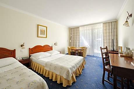 Located in Zakopane, just off the Dolina Białego Valley, Belvedere Hotel offers a large spa and wellness center. Its quiet rooms come with satellite TV and free Wi-Fi. The Belvedere is located just 10 minutes’ walk from Krupówki Street. Polana Szymoszkowa Ski Elevator is 2.5 mi from the hotel. The rooms at this hotel feature a mini-bar and a safety deposit box. Each bathroom has a heated floor, a hairdryer and a bathrobe. The spa at Belvedere Hotel has a spa bath, a sauna, a steam bath and an indoor pool with hydromassage. The spa center offers Thalassotherapy and various kinds of massages. The Belvedere has 2 restaurants: breakfast restaurant and restaurant ‘Pod Aniołem’. The last one has a large wooden terrace, offering a beautiful panorama of the Tatras. In the morning, guests can enjoy a varied buffet breakfast.