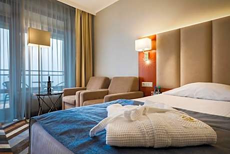An air-conditioned room featuring a seating or work area and satellite TV. Extra beds are not available for this room type. Bathrobe and a mini-bar are also provided.