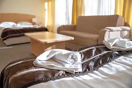 Hotel Borovets Edelweiss is located in Borovets. This property is located a short distance from attractions such as Ski center Borovets. Free shuttle service to the ski elevator is provided. Fitted with ergonomic beds, the modernly furnished units in the hotel are fitted with a flat-screen TV. With a private bathroom, rooms at Hotel Borovets Edelweiss also have a heating system that meets the highest modern standards. A buffet breakfast is served every morning at the property. Staff are always available to help at the reception. Free WiFi access is provided in the lobby area. Musala Peak is 12 mi from the accommodations. Sofia Airport is 42 mi from the property.