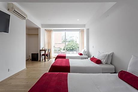 Welcome to the perfect hotel for your stay in Medellin, located in the heart of Poblado! Discover comfort and convenience in our hotel, located just a 1-minute walk from emblematic places such as Lleras Park, Poblado Park, and Provenza. You'll be 1.2 mi from the Santafé and Oviedo Shopping Malls, and 0.7 mi from the Metro Station. Here, you can easily explore Medellín's vibrant streets and immerse yourself in its unique culture. In addition to our privileged location, we offer a free American-style breakfast as a courtesy of the house, so you can start your day with energy. Delight yourself with a variety of options including eggs, cheese, bread, orange juice, fresh fruits, hot drinks, cereals, and yogurt. Our rooms have air conditioning, a private bathroom, a desk, and Wi-Fi. And if you are looking to relax and enjoy the panoramic views of the city, don't miss our spectacular terrace with a hot tub area. Enjoy a moment of peace and tranquility while contemplating the Medellin skyline from the top.