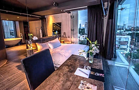 A rooftop terrace with an outdoor pool and city views can be found at this boutique hotel which is situated in the Lafayette neighborhood, just a 15-minute drive from the center of Guadalajara. The stylish rooms are in a historic building and the suites include free Wi-Fi and a flat-screen TV. Every suite at the Demetria features elegant hardwood furniture. They are all air-conditioned and include an iPod dock, a minibar and a buffet breakfast. Free parking is provided at the Demetria Hotel. It is located a 15-minute walk from Guadalajara University. The city's cathedral is less than 2 miles away. The hotel has a bar and an à la carte restaurant serving a daily breakfast buffet. You can also find various restaurants and cafes in the surrounding streets and along Chapultepec Avenue.