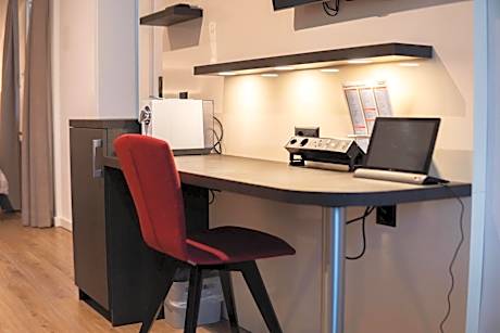 Room with attached bathroom with air conditioning, a Delizio espresso machine and a mini-bar.