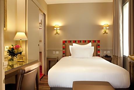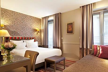 Located in central Paris, this hotel is just 0.6 mi from Gare du Nord Train Station and 492 feet from Bonne Nouvelle Metro Station, which leads to many touristic attractions. It offers a 24-hour reception, a terrace and free WiFi. The soundproofed rooms at Hôtel des Comédies have a flat-screen TV with satellite channels, a mini bar and a private bathroom with a hairdryer. Some of the rooms in the attic boast a view of the Sacré-Cœur Basilica. A buffet breakfast is served every morning and a bar is also available. The surrounding area offers a wide range of restaurants, bars, cinemas and theaters like the famous Grand Rex. The Louver Museum is 1.2 mi away and the Center Pompidou is a 20-minute walk from the hotel. Montmartre and the Noter-Dame Cathedral are 15 minutes away by public transport.