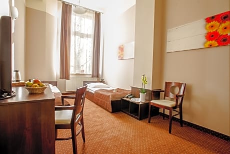 This comfortable hotel offers a prime location in the center of Gliwice, close to the Market Square, the Municipal Office, the Silesian University of Technology, the theater and the main railway station. Each of the comfortable rooms at Hotel Diament Economy is well-appointed with free WiFi, a work desk, tea/coffee making facilities and satellite TV. Each room features a a bathroom with a shower and free toiletries. Guests can enjoy some pampering at Hotel Diament Economy's hairdresser and beauty salon. A safe, luggage storage and laundry service are available. Ironing facilities will be delivered upon request. The professional staff team prides itself on a high standard of service and is available 24 hours a day. There is an elegant restaurant at the hotel specializing in traditional Polish cuisine, where guests can enjoy varied buffet breakfast each morning. The monitored parking is located 984 feet from the hotel.
