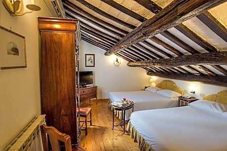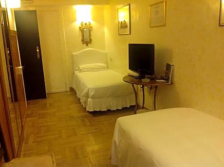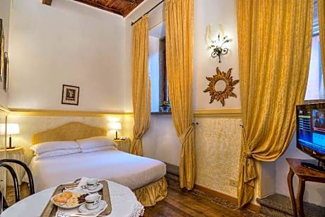 Air-conditioned room with private bathroom and parquet floors. Features a flat-screen TV with SKY channels and a small skylight window. Wi-Fi is free. With skylight window, or window overlooking the internal courtyard.