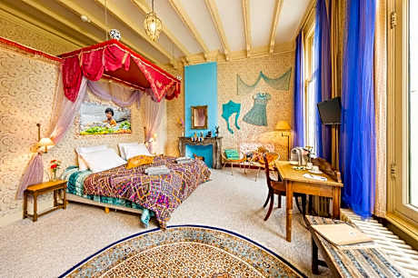 Inspired by the Moroccan country and culture, this exotically decorated room has a double bed, a kitchenette and a seating area. The room has a view of the water and the Rande estate. It has an open bathroom with a shower and toilet.
