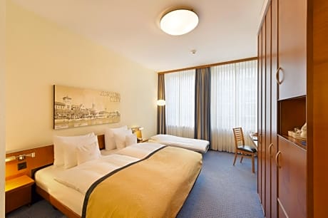 The Glärnischhof by TRINITY is located in the very center of Zurich, right next to famous Bahnhofstrasse, the congress hall, the Tonhalle concert hall and Lake Zurich. It offers free WiFi and 60% discount for access to the Luxor Fitness Center with sauna and steam bath, located only one minute walking distance from the hotel. The air-conditioned rooms feature a TV with international channels, a Beanarella coffee machine, and a bathroom. The ergonomic beds are equipped with special air cushioning. A continental breakfast is served every morning. The hotel restaurant, Trinity, serves schnitzel variations based on the Viennese model that are big, thin, tender and crispy. Cordon Bleus variations of Swiss origin and a large number of burger creations are also served.